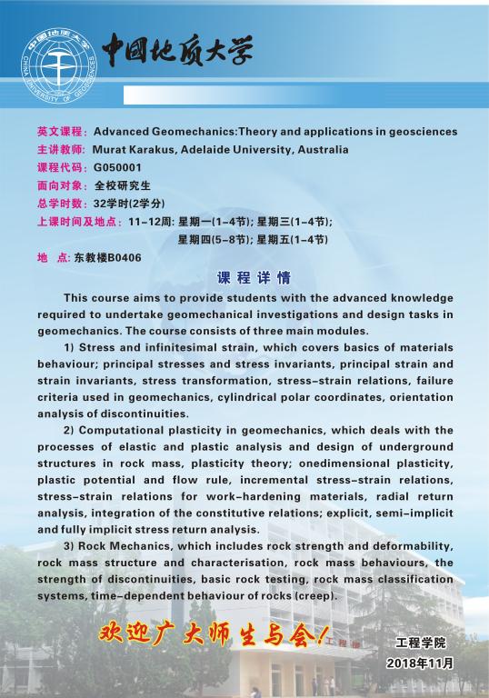 全英文课程:Advanced Geomechanics:Theory and applications in geosciences上课通知